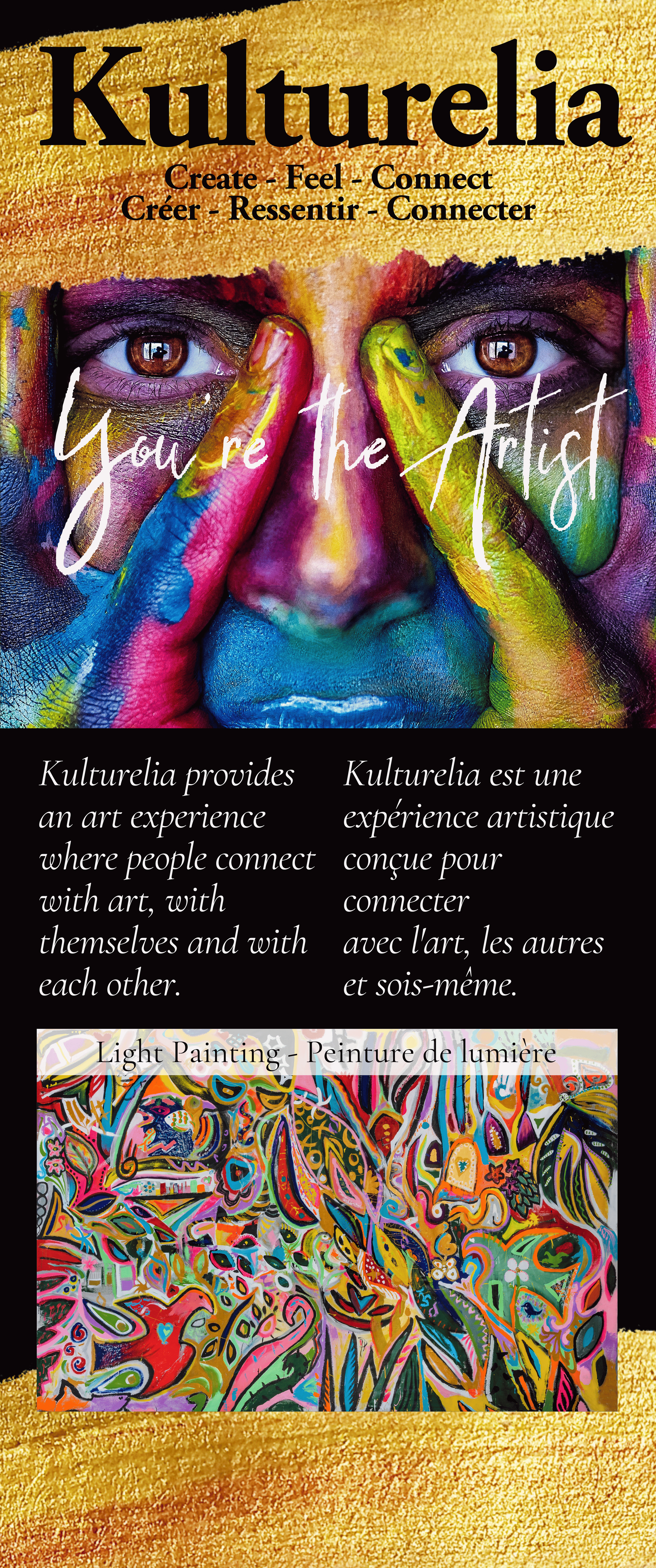 Create – Feel – Connect / Créer – Ressentir – Connecter.